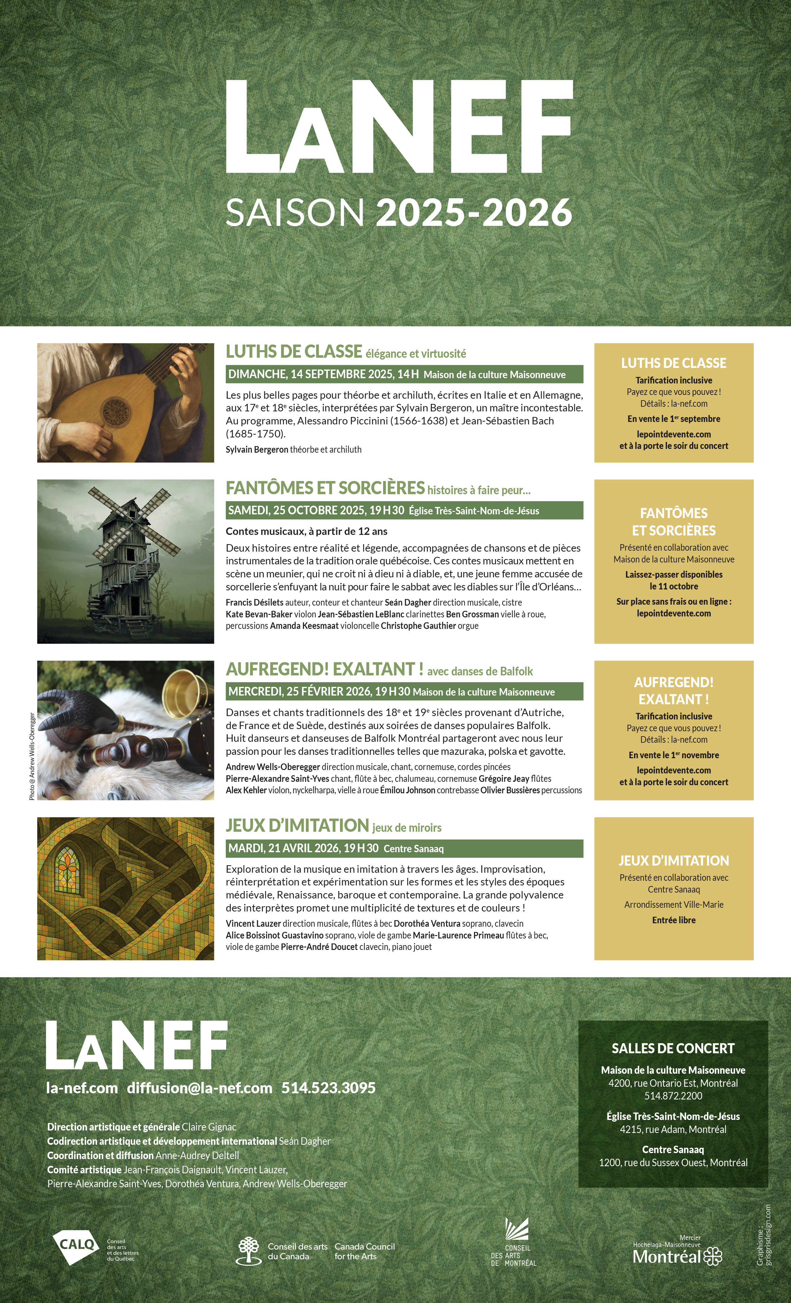 Dans une perspective d’équité et de solidarité, La Nef vous offre une tarification inclusive pour ses concerts de saison. Notre objectif est de permettre à plus de personnes d’assister à nos concerts peu importe leur situation financière.